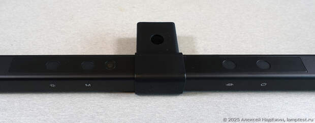 Четыре сенсорные кнопки расположены на верхней поверхности плафона (там же и датчик освещённости), а подписаны они спереди.