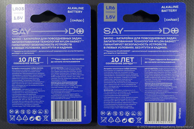 Помимо AA и AAA под брендом SAYDO выпускаются щелочные (alkaline) батарейки C, D, 9V (Крона), а также литиевые батарейки CR2016, CR2025, CR2032. Их уже можно купить в магазинах и на маркетплейсах. По возможности протестирую все эти элементы питания.
