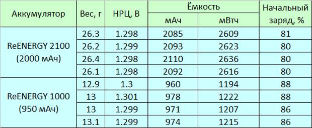 На аккумуляторах ReENERGY 2100 указана ёмкость 2000 мАч, на ReENERGY 1000 указана ёмкость 950 мАч. Фактически это гарантированная минимальная ёмкость, в реальности может быть больше.