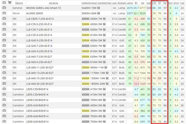 Давно замечено, что иногда попадаются лампы, у которых все параметры, включая индексы цветопередачи, отличные, а свет неприятный из-за зеленоватого или какого-либо другого оттенка. Опознать такие лампы позволяет новый параметр Delta Uv (Duv), это отклонение оттенка цвета от нейтрального. Чем меньше значение этого параметра, тем лучше. Считается, что свет белый, когда Duv меньше 0.02. Пока что этот параметр отображается только в карточке лампы на сайте.