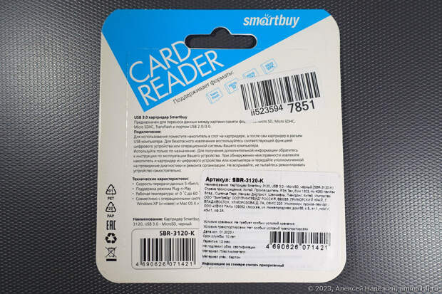 Нашёл маленький картридер Smartbuy SBR-3120-K USB 3.0 и купил его за 339 рублей.