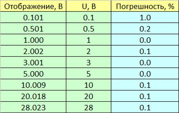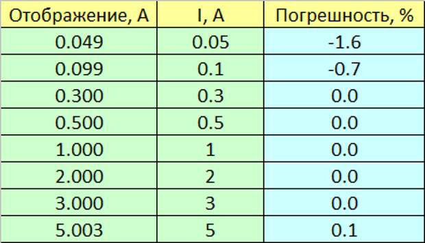 Я проверил точность отображения напряжения и тока. Учитывалось отображение трёх знаков после запятой (остальные два знака всё время "прыгают" и они больше "для красоты", а не для точности).