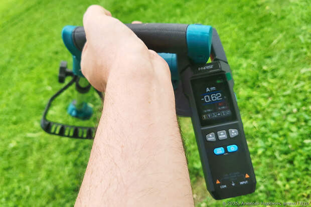 Оказалось, что для измерения тока можно просто повесить токовые клещи на ручку (там проходит один провод от аккумулятора).